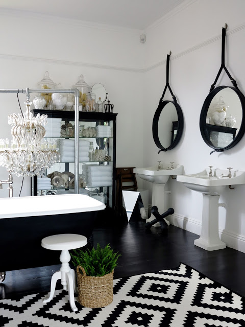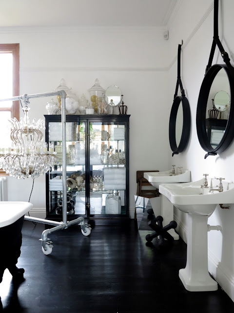 The bathroom with those incredible mirrors, apothecary goodness and beat of a display cabinet….and holy Mother Mary, don’t get me started on the chandelier suspended from the dressing wrack…if imitation is flattery, Monsieur Michael should prepare to see his work copy dopied by this missy come dream home time.
