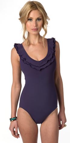 This Lisa Curran Swim ruffle suit in grape is yours!