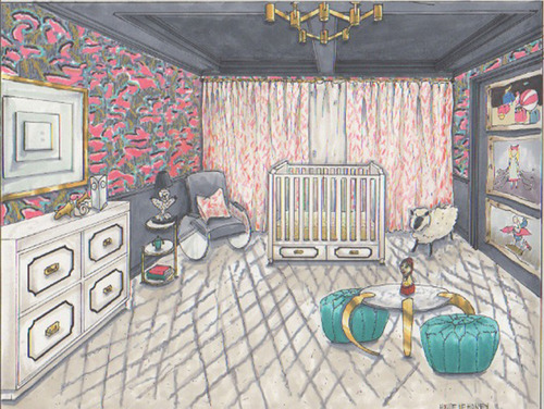 {even though it’s meant for a kidlet…the art and the cat…and that Christopher Farr fabric yum}