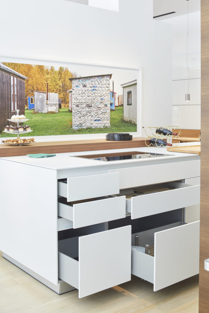 Current kitchen designs, for example, often showcase lower cabinets only. In my kitchen, no upper cabinets means that glassware, plates and cutlery are all stored in my island drawers. Prior to having GRASS soft close hardware installed, I was having to deal with the almost constant sound of drawers banging shut and dishes breaking. Now that all of my big-box hinges and drawers systems have been replaced with GRASS, I can now enjoy the look I wanted with so much more functionality.