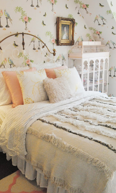 Posted at 12:38h, 18 NovemberSeriously one of my all time favorite rooms! From the wallpaper to that wedding blanket! So perfect.