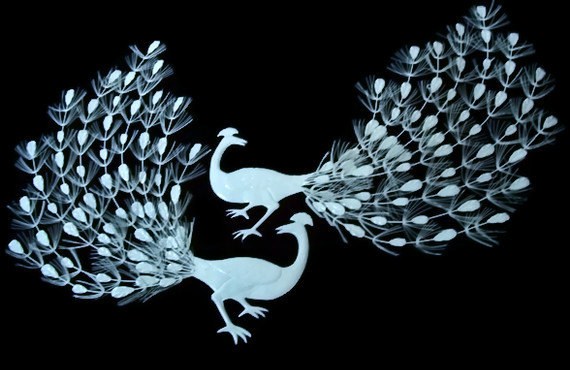 White laquered swans peacocks over the crib…HELL YES.