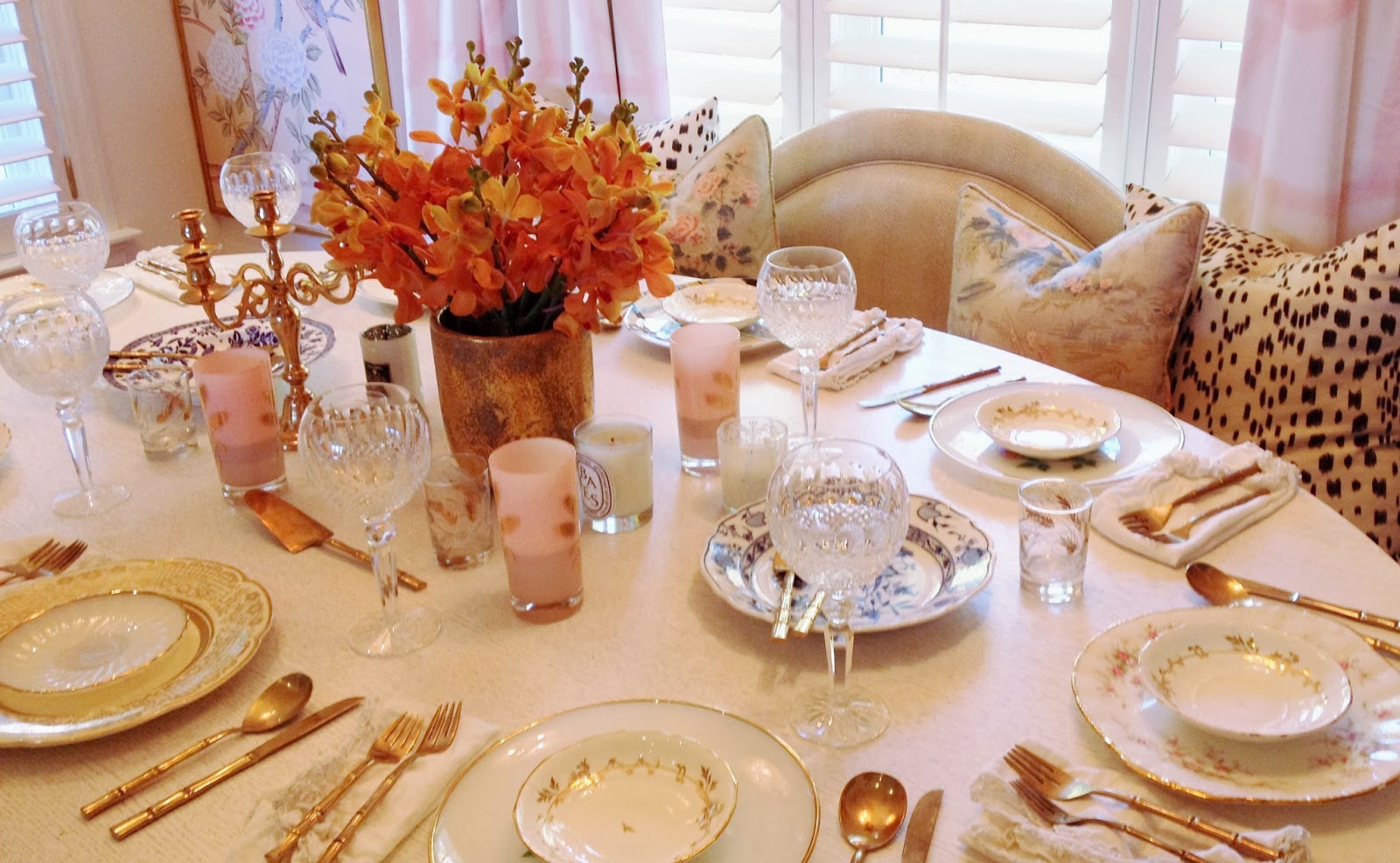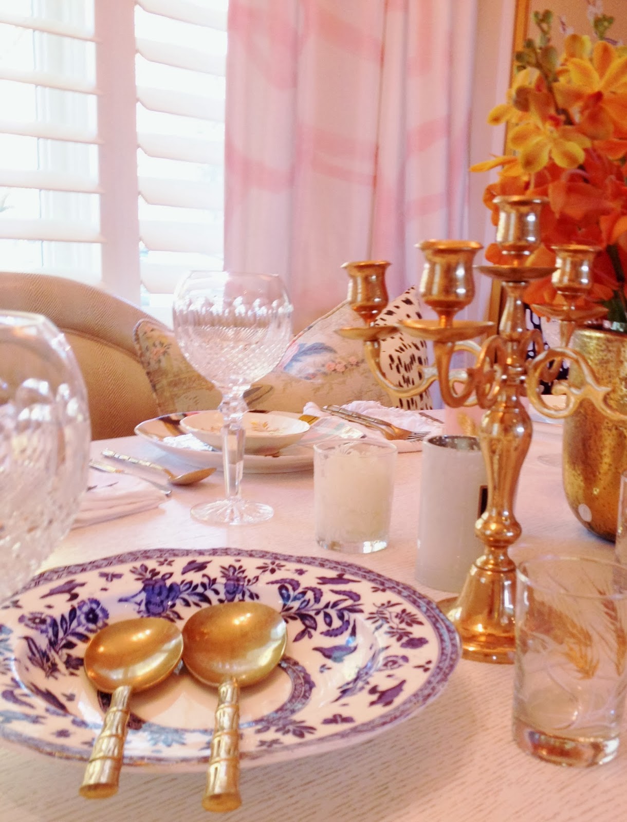 1. I’m thankful for pretty china that was passed down to me, gold flatware I scored on eBay for a song a few years back, orchids of any and all varieties, and the set of crystal glasses my sweet Nana gifted to us for our wedding…