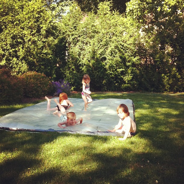 Basically, you take plastic sheeting that one would use to insulate walls, cut it into two giant squares, tape on all sides with duct tape and fill with hose water.
