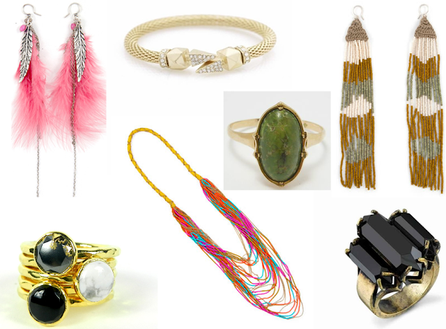 *feather earrings, neon necklace and bead earrings- bloboho