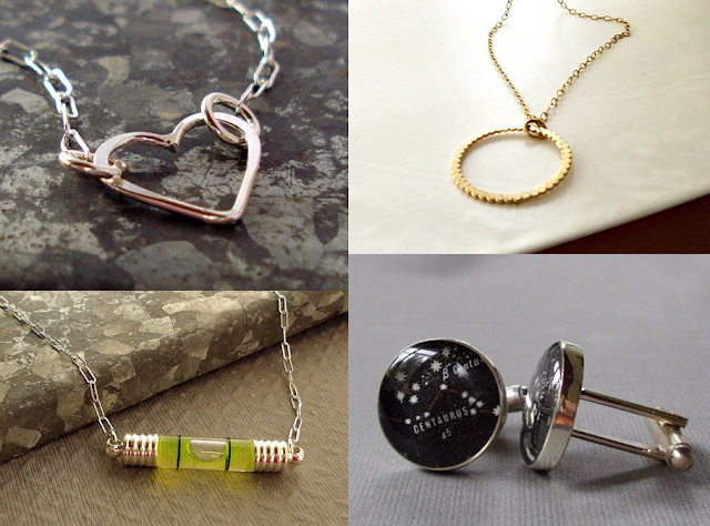 *heart and level necklace, cuff links- Sherry Truitt Studios