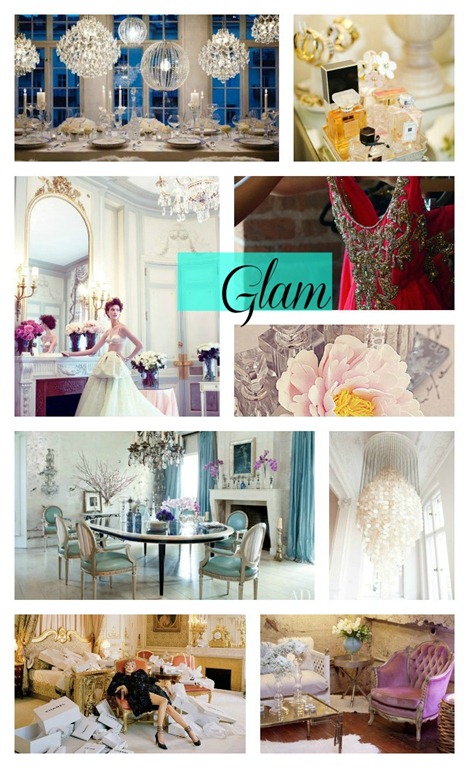 Like most women, I am drawn to anything that sparkles. Being surrounded by diamonds, crystals, and gold can make any woman feel like Kate Middleton. I love how a glam style is the perfect mixture of feminine and vintage with a touch of charm and a whole lot of bling. Massive crystal chandeliers, Chanel, white marble, and gold furniture makes for the perfect combination of glam.