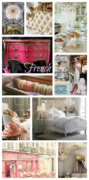 If I had to sum up my style in just one word, “French” would probably be my word, it covers all the bases. The French have achieved a bold and modern look with their black and white stripe; a vintage look with the shabby chic farmhouse style; and their haute couture, crystal chandeliers, and elaborate Rococo furniture make for the perfect mix of glam and feminine. To top it all off they have the world’s most delicious and decadent pastries. Goodness, why am I not living there? The French style always has me saying, “C’est très belle!”