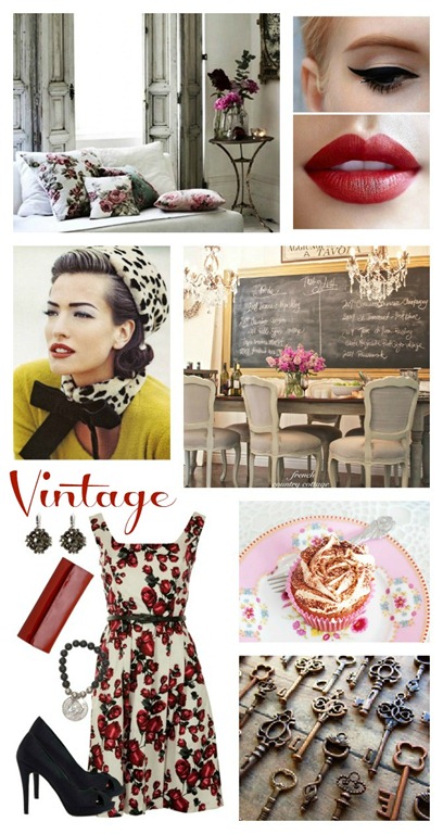 I think every outfit or room needs a touch of vintage; anything from a skeleton key necklace to an old steamer trunk used as a coffee table. Using a mix of old and new makes an outfit more charming and a room look more cozy and lived in. My favorite pastime is spending the day in a flea market or on Etsy looking for the perfect vintage item to add to my collection. A vintage piece is a conversation starter and is even more special if it has a story to tell (like it belonged to a grandparent or Abe Lincoln’s neighbor). Adding a vintage piece breaks the cookie cutter mold and makes any room/outfit one-of-a-kind.