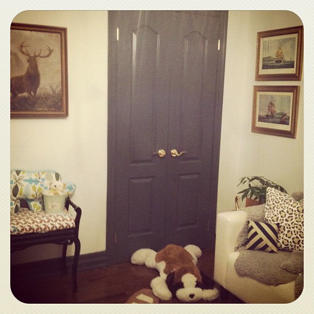 and in Mac’s room…the bench, deer painting and ship photos…