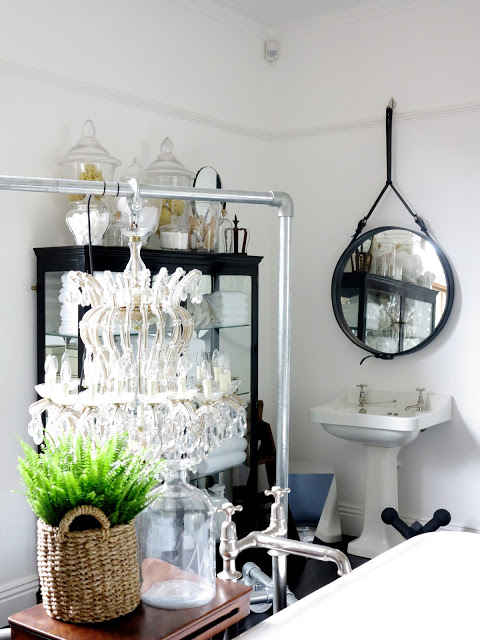 The bathroom with those incredible mirrors, apothecary goodness and beat of a display cabinet….and holy Mother Mary, don’t get me started on the chandelier suspended from the dressing wrack…if imitation is flattery, Monsieur Michael should prepare to see his work copy dopied by this missy come dream home time.