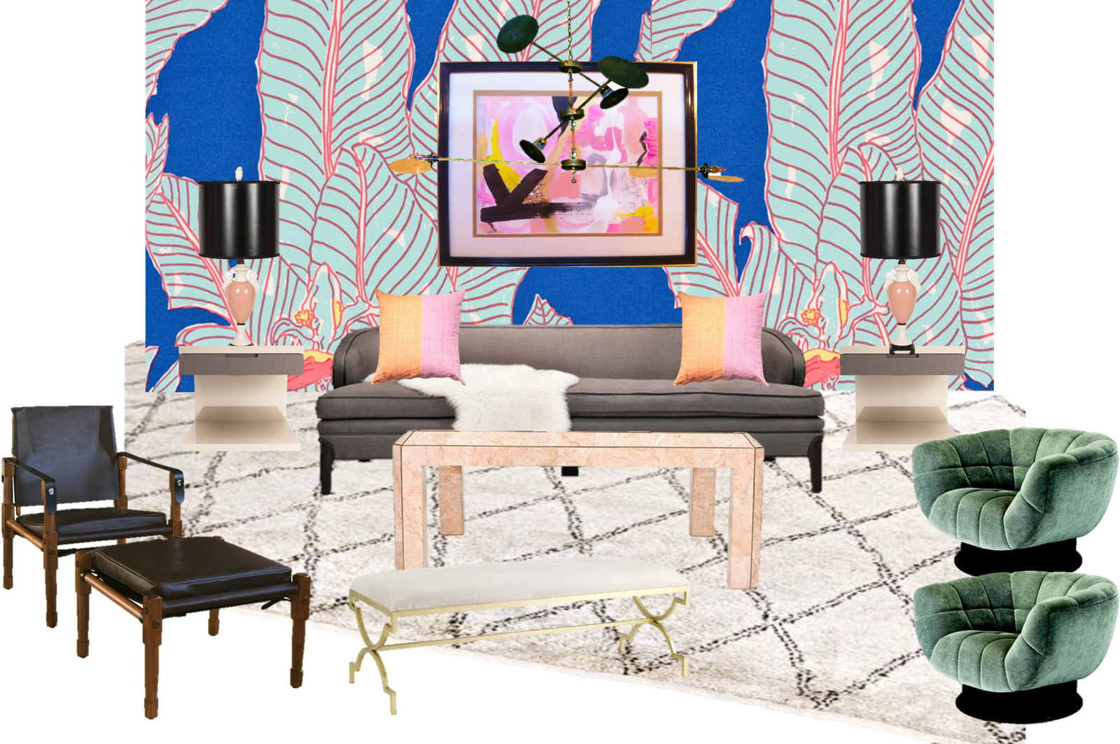 Posted at 09:01h, 11 JulyOMG I LOVE THIS!!!!!!! I love the lamps and that white light fixture!! And that green rug….everything!!! xoxo