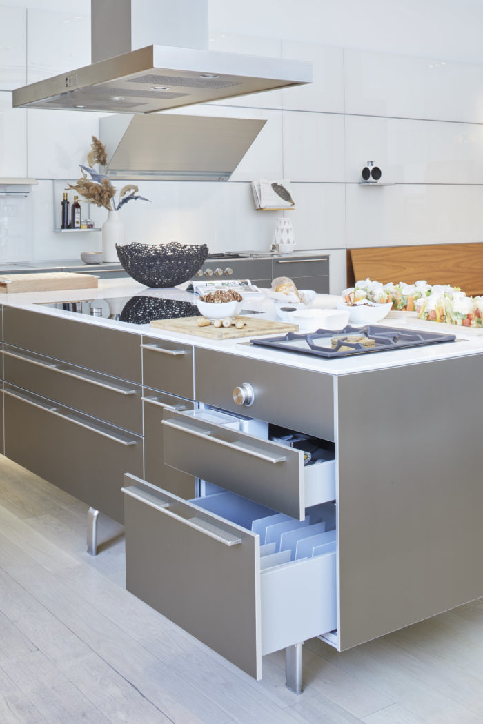Current kitchen designs, for example, often showcase lower cabinets only. In my kitchen, no upper cabinets means that glassware, plates and cutlery are all stored in my island drawers. Prior to having GRASS soft close hardware installed, I was having to deal with the almost constant sound of drawers banging shut and dishes breaking. Now that all of my big-box hinges and drawers systems have been replaced with GRASS, I can now enjoy the look I wanted with so much more functionality.