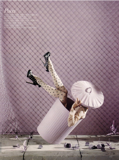 Lovely editorial too, but I’m a little pissed off that Pisces ended up in a trash can. What’s up with that?