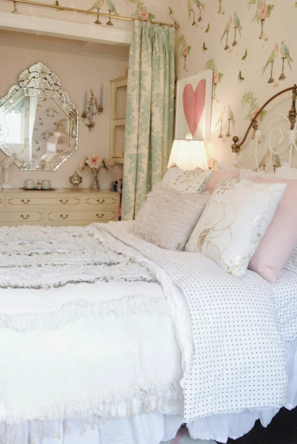 Posted at 12:38h, 18 NovemberSeriously one of my all time favorite rooms! From the wallpaper to that wedding blanket! So perfect.