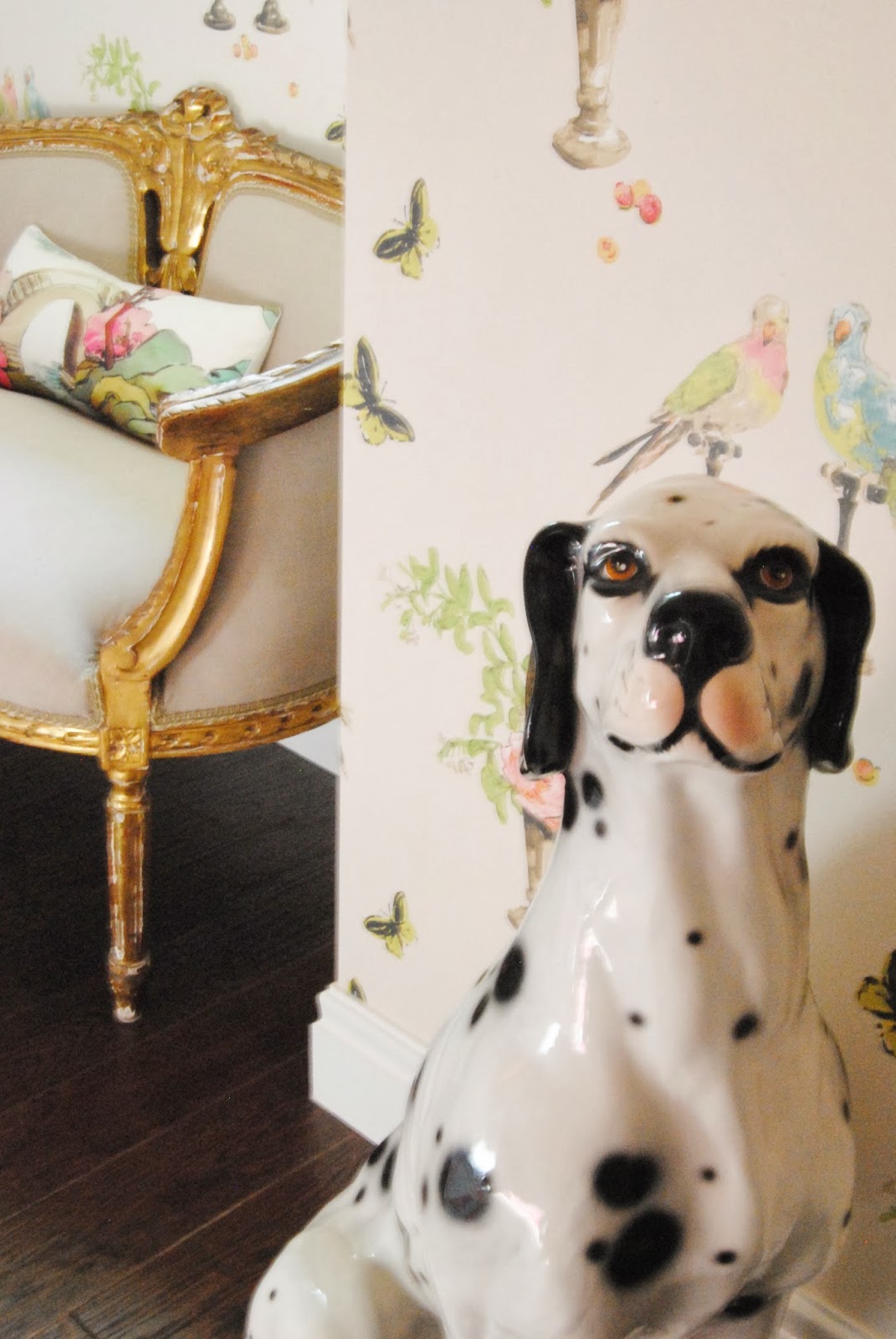 Love that handsome doggie and hello to that settee from Black Rooster!