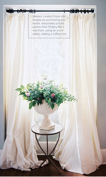 Pottery barn silk drapes with added ruffle trim that pool on the floor = girl nursery curtain plan.