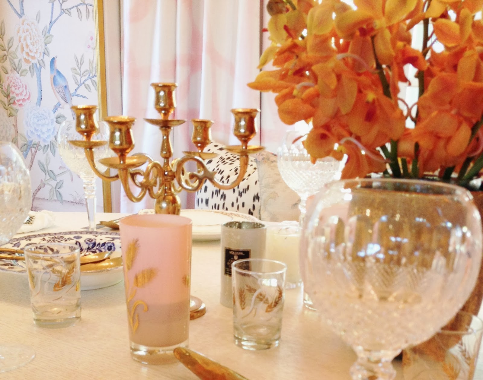 1. I’m thankful for pretty china that was passed down to me, gold flatware I scored on eBay for a song a few years back, orchids of any and all varieties, and the set of crystal glasses my sweet Nana gifted to us for our wedding…