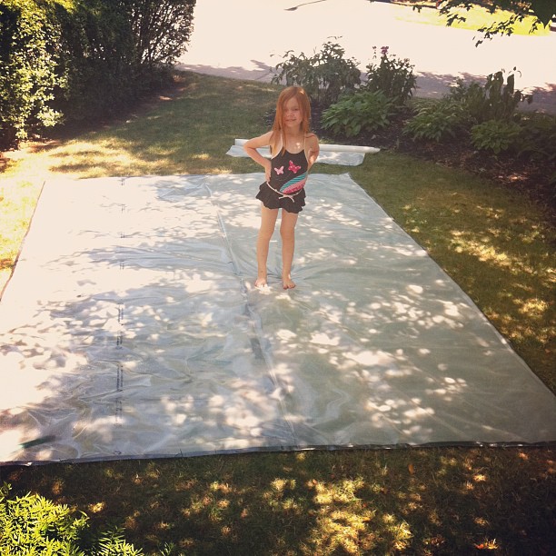 Basically, you take plastic sheeting that one would use to insulate walls, cut it into two giant squares, tape on all sides with duct tape and fill with hose water.