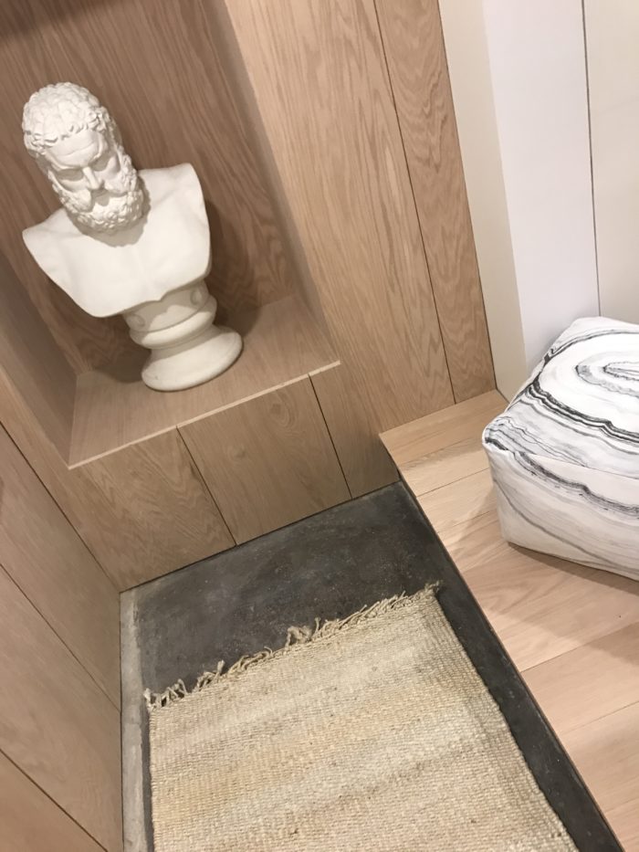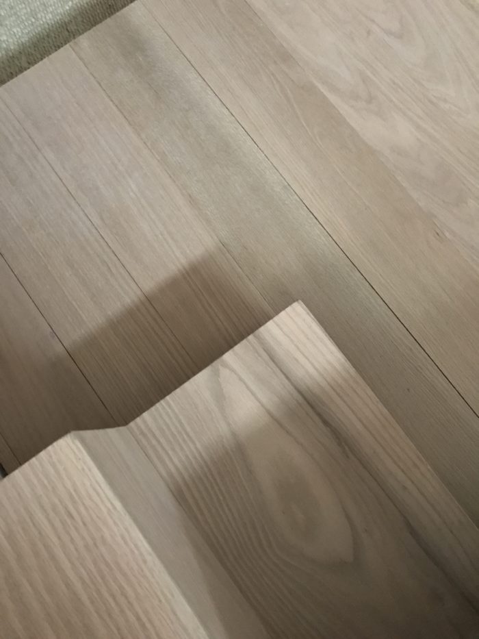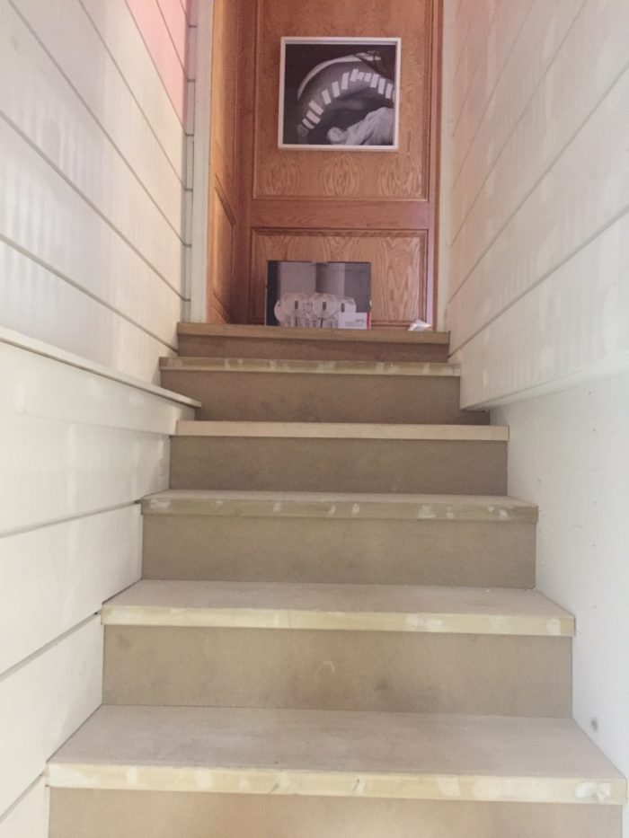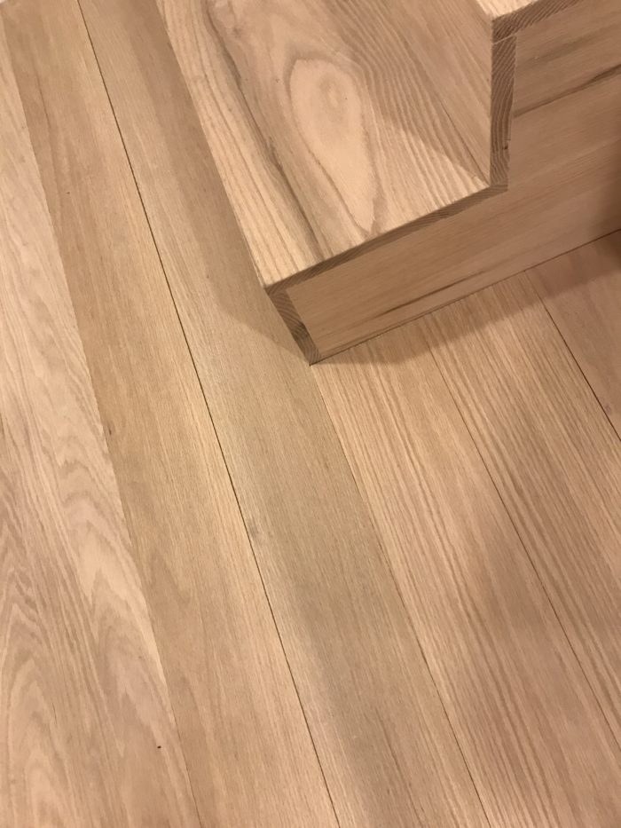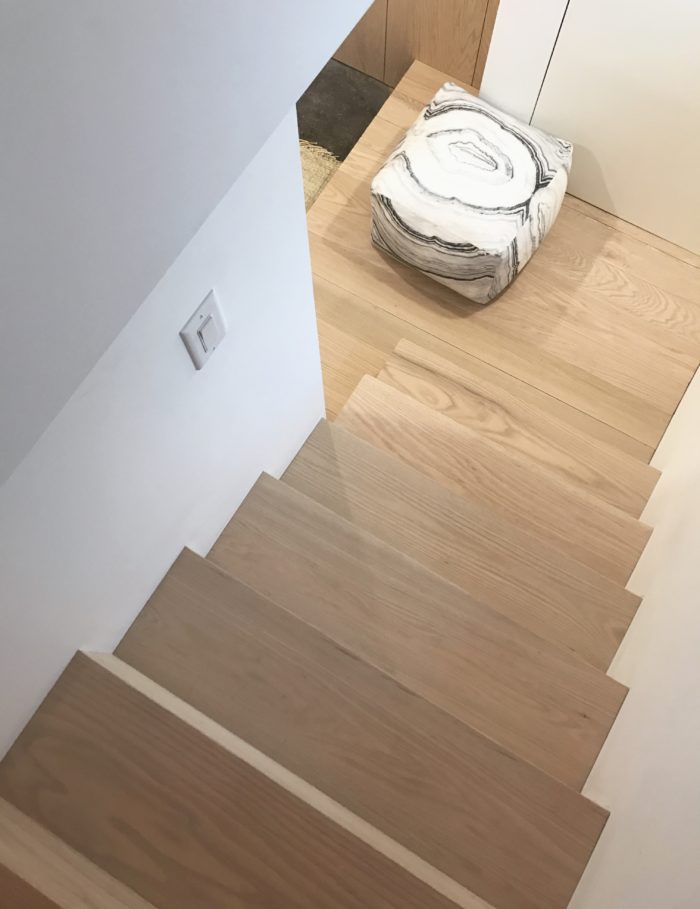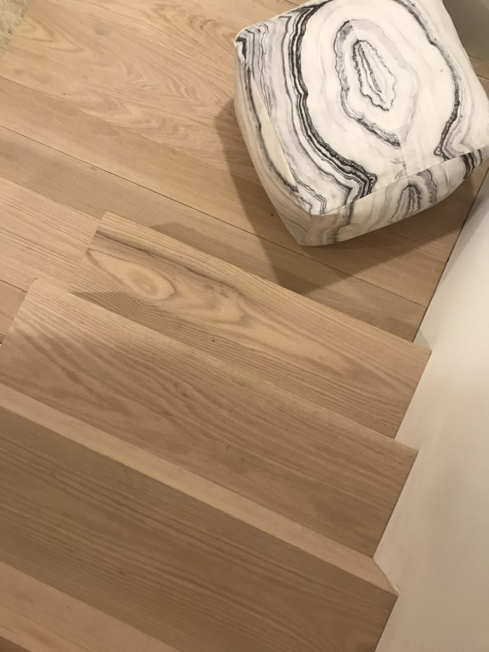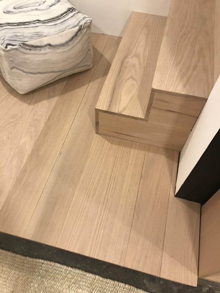 …my contractor made the floor boards ( yes MADE them…amazing) out of Metrie 1″ x 6’oak flat stock…the stairs were also clad in it and that was generously done by RMS.