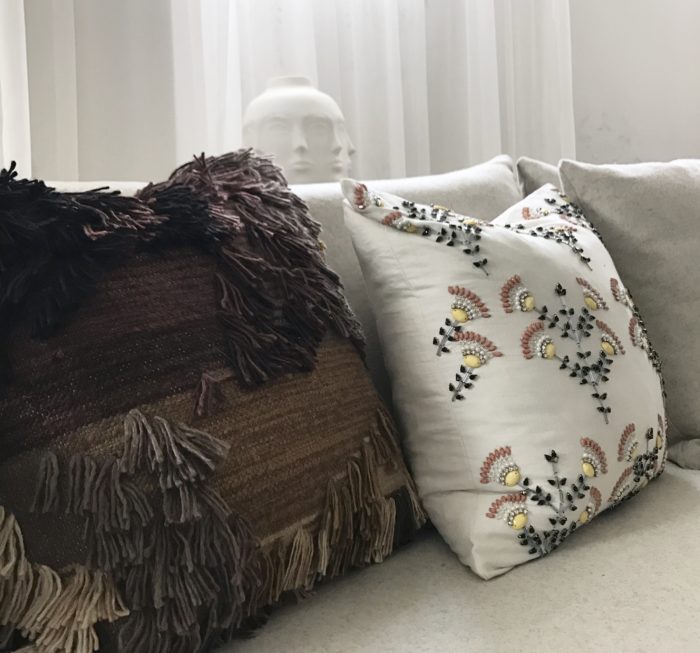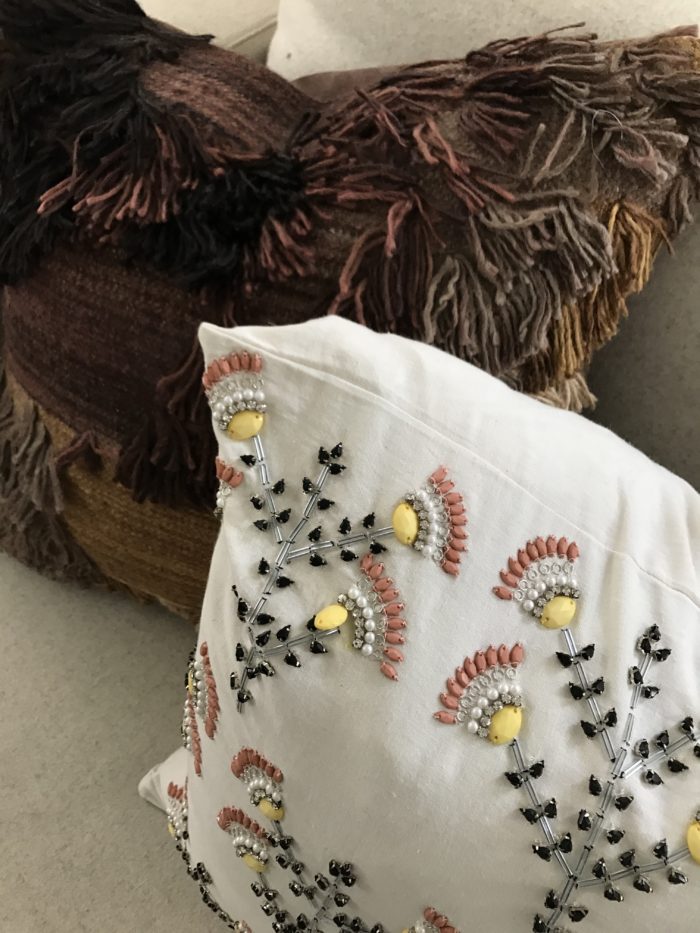 …brown velvet pillow (fabricut and sewing by Hollie Cooper Interiors).