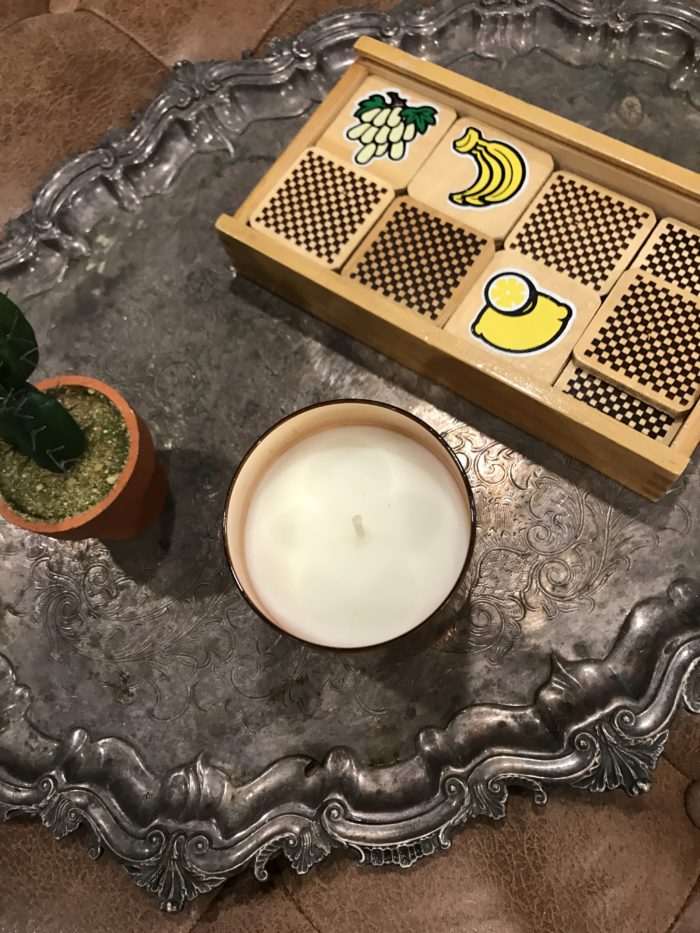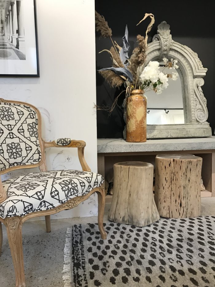 …side table by Candelabra and bench from The Mine.