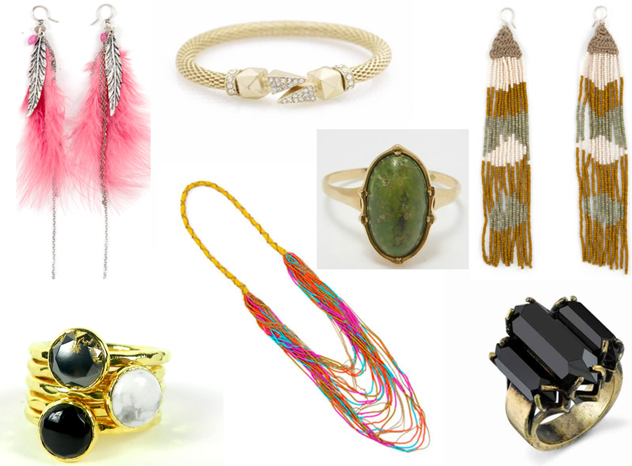 *feather earrings, neon necklace and bead earrings- bloboho