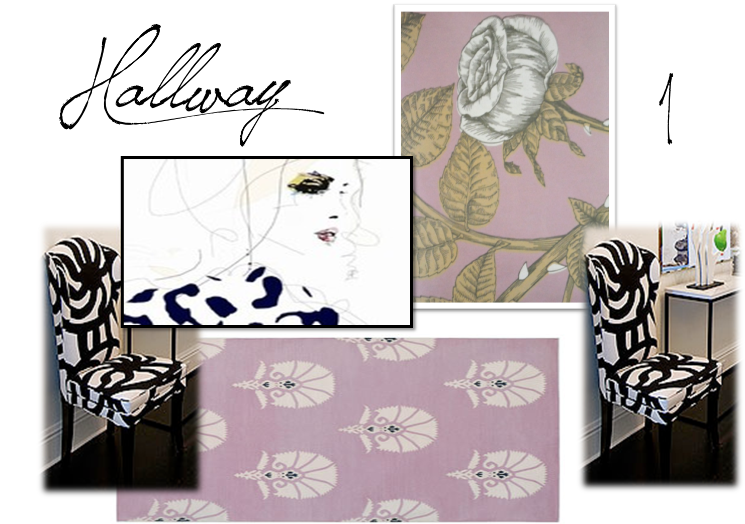 I received a sample of the Timorous Beasties McGegan Rose paper on Friday and my head has been spinning ever since. I absolutely love it but I’m not totally sold on replacing my beloved ostriches. I’m also not sure if it would be too much pink alongside the already pink living room. As well, the curtains for the kitchen will be a floral so I don’t know if I want another floral in such close proximity. Having said all that, I am so smitten with the paper that I am leaving the option open for now. The artwork in this option if also from JKL- love! If it doesn’t end up in the foyer, I might have to find a place for it in my bedroom. In this scenario, I might consider the black and white photograph above- I think the photograph would be delightful above my bed.