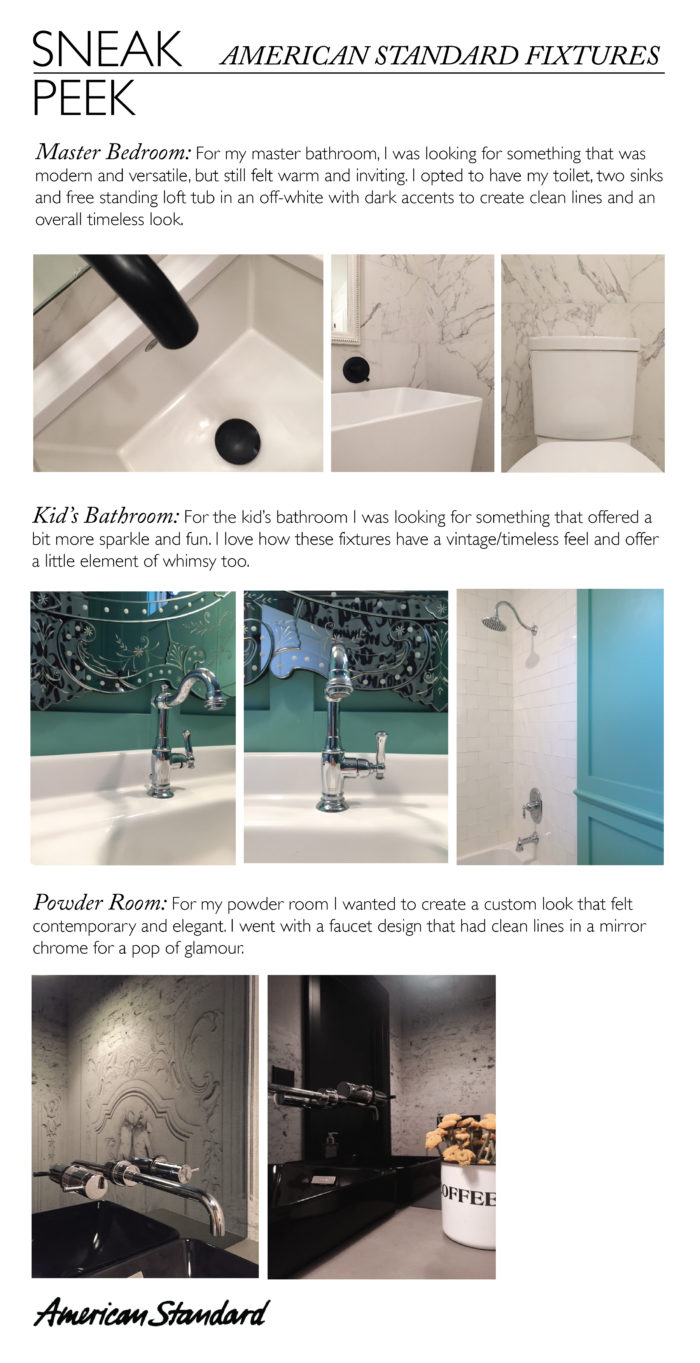 As such, today I am giving a sneak peek of my favourite American Standard pieces that I’ve used in my #pineave bathrooms. Below are 3 completely different looks for 3 completely different rooms.