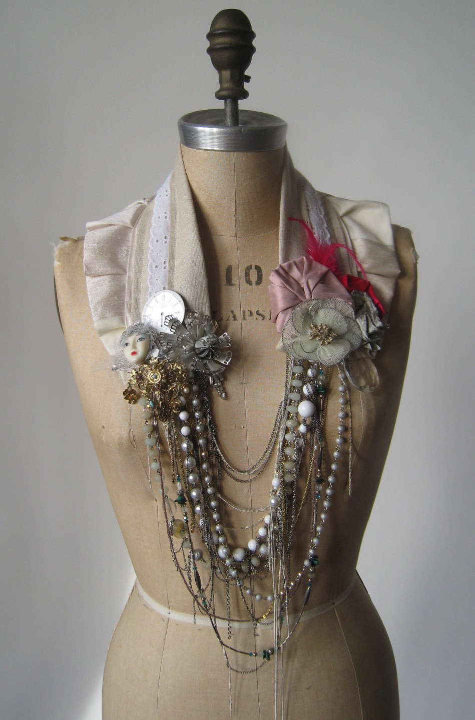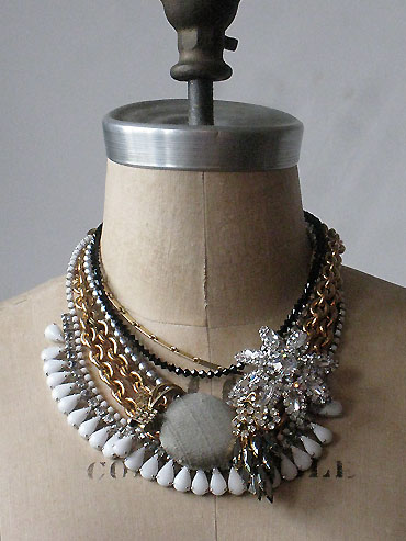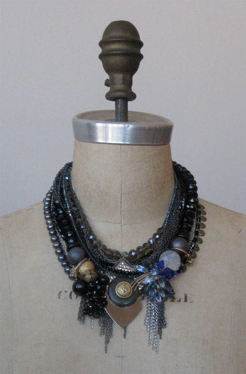 Made of vintage treasures, trinkets from the customers own collection, or custom made pieces, her necklaces evoke a sense of feminine strength and character.