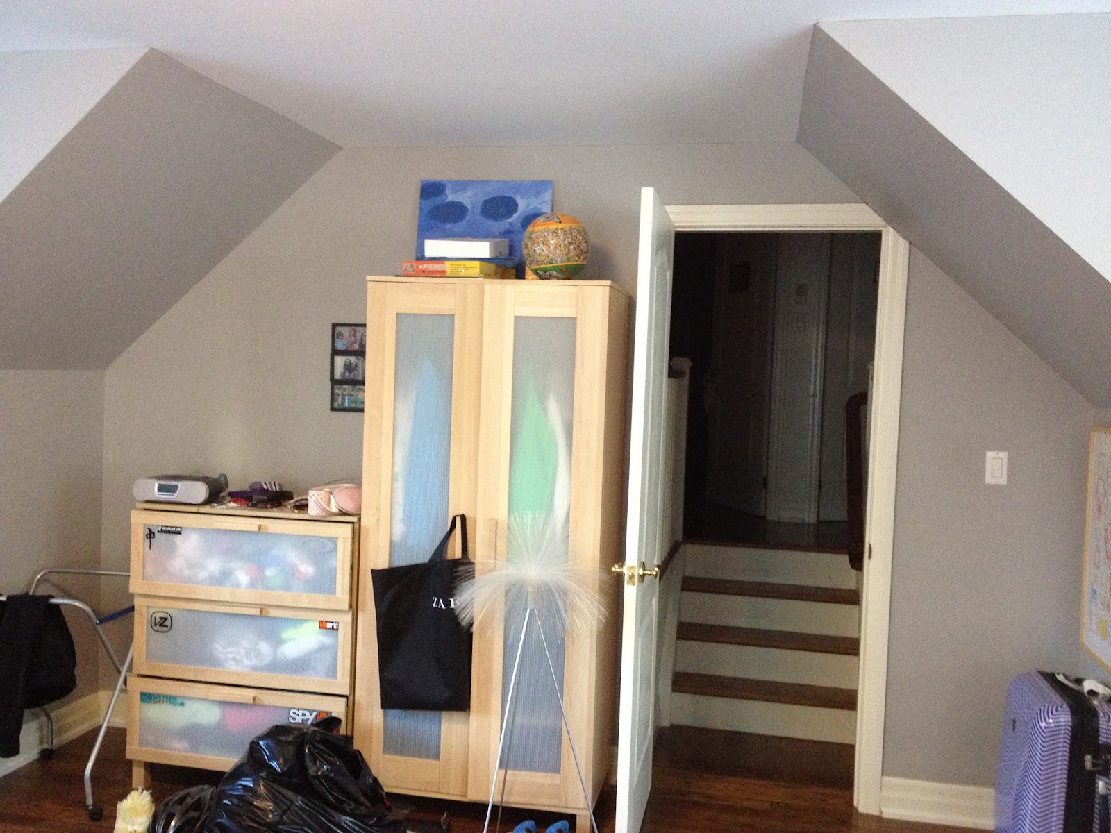 This is the view looking out of the room to the upstairs…as you can see, this room is on it’s own level….that closet wall is the only one where you can put something tall…