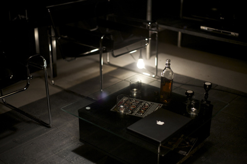 The first space is called the Unwind…black, metal…garage turned living room…sleek, edgy, cool.